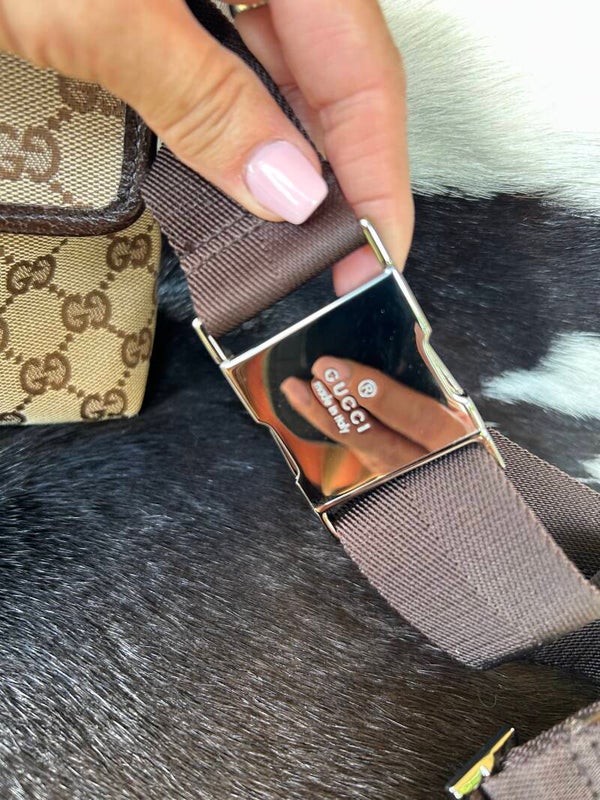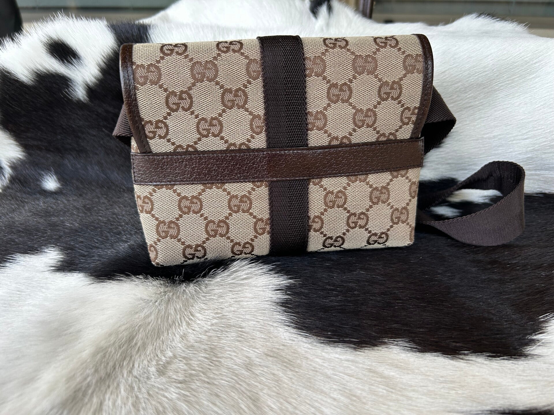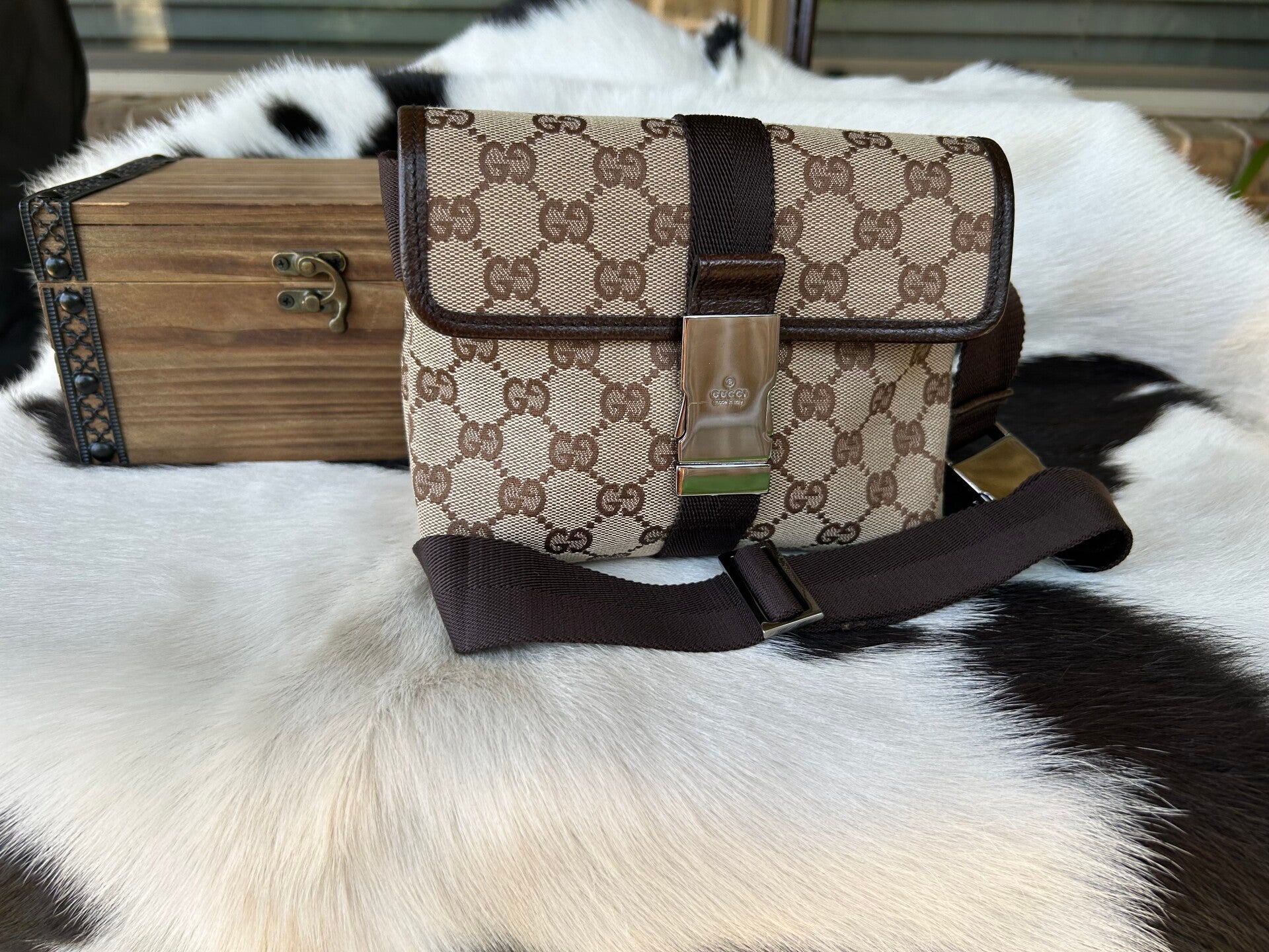 Very clean nice authentic bag , can be crossbody or waist bag strap is adjustable ,comes with dust bag and box. 7.5 width 5.26 height