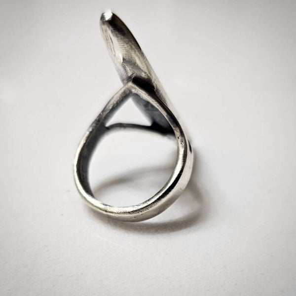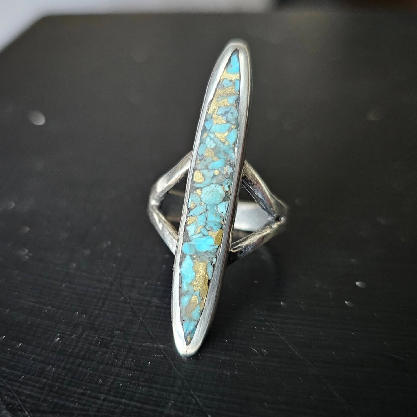Forged silver, and turquoise inlay. EVERYTHING was created molten silver, hammer and anvil. The turquoise came from hand crushing RAW unstabilized 100% natural turquoise.......