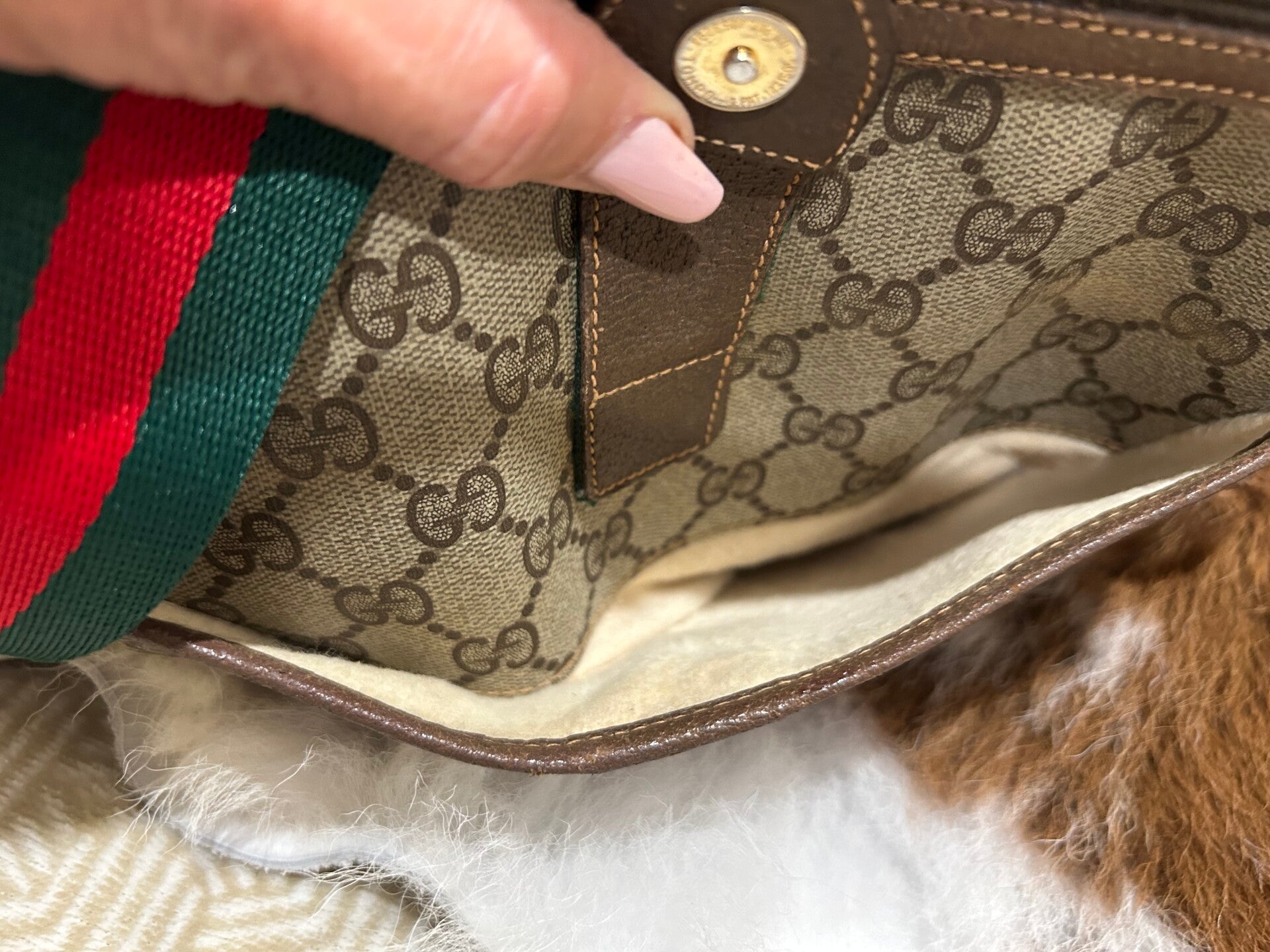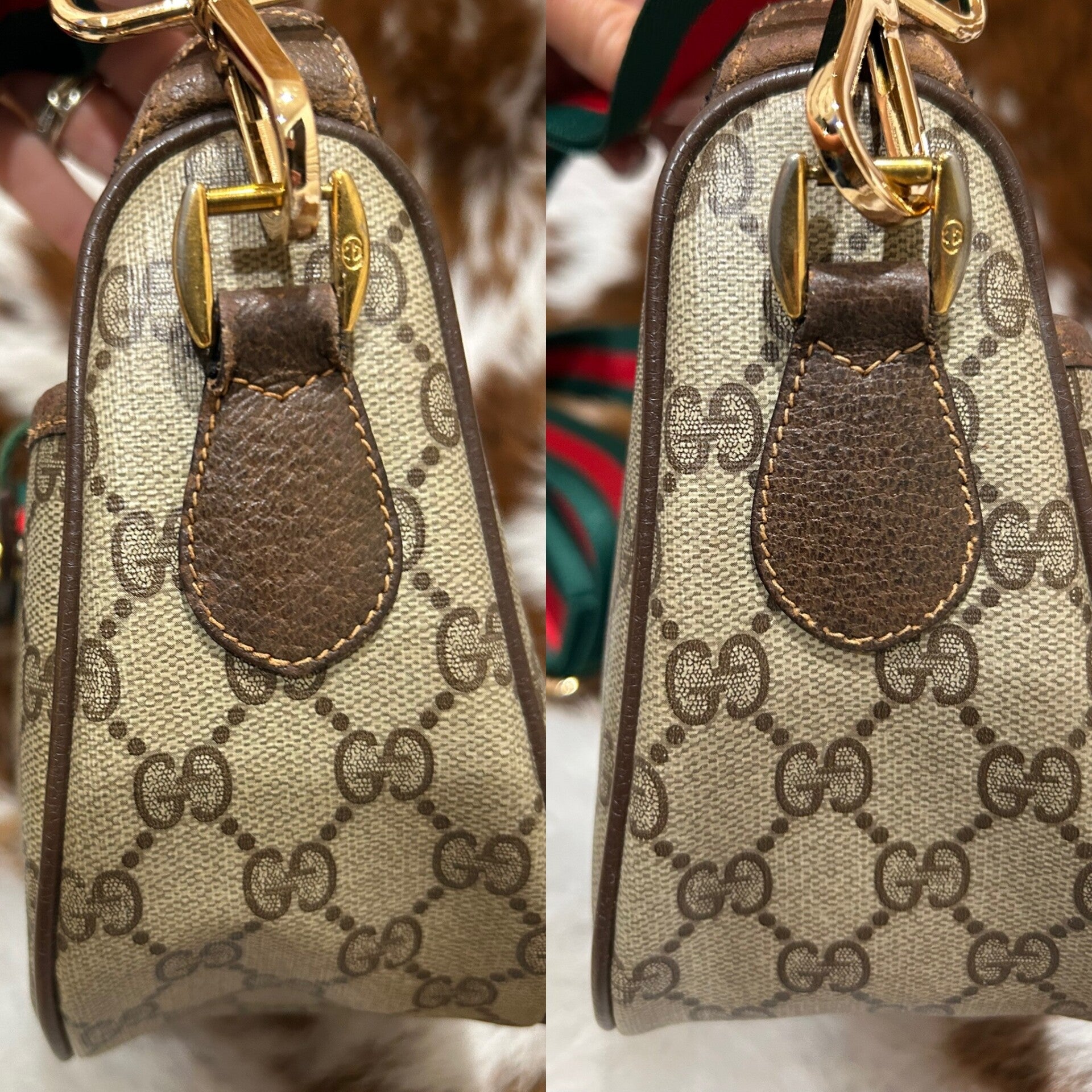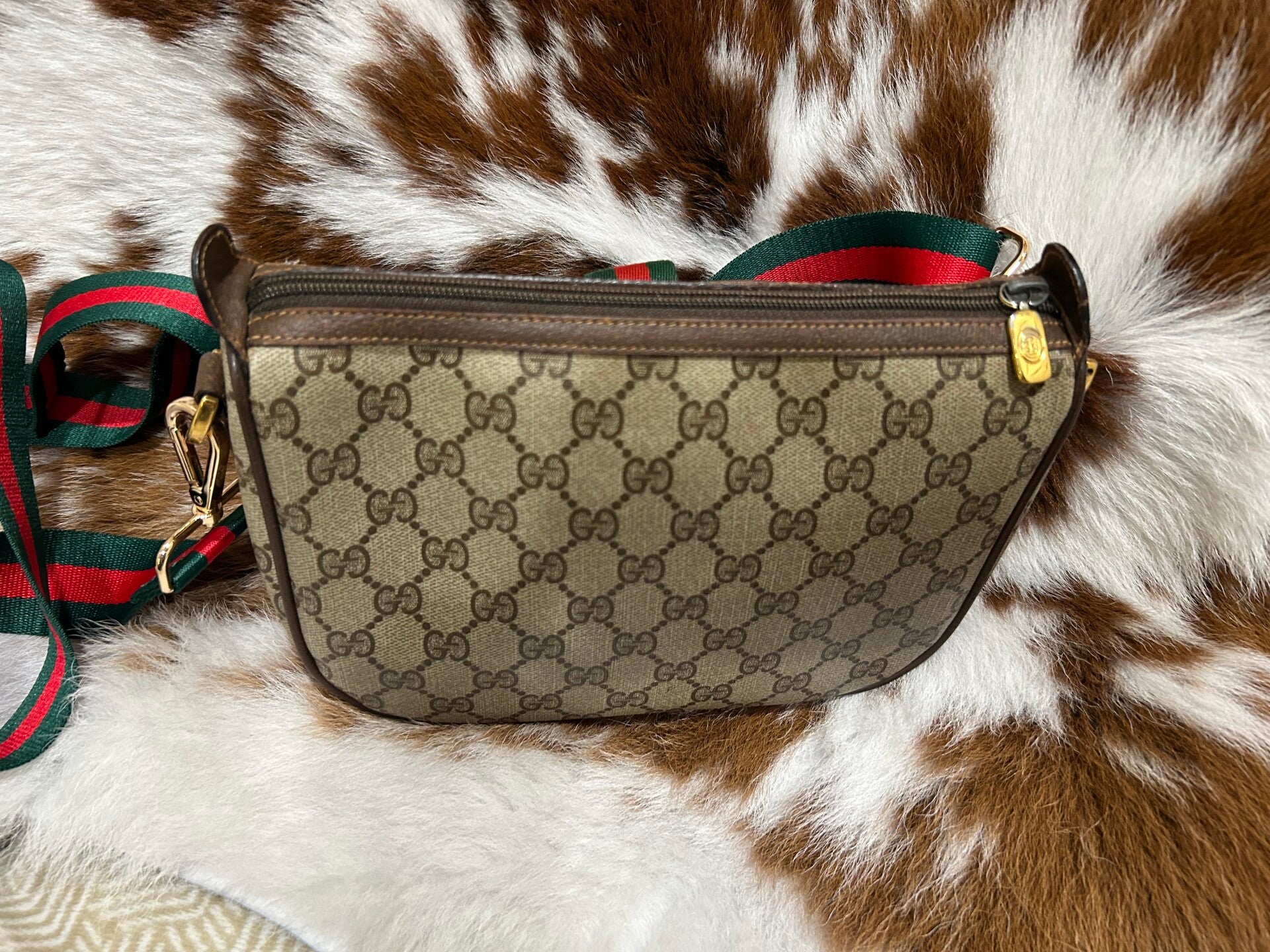 Gorgeous Gucci crossbody bag , with non Gucci green and red canvas adjustable strap.